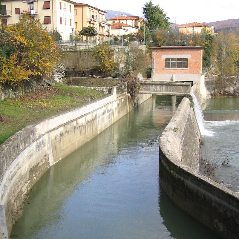 A series of interesting architectural ruins, still legible, related to the use of water can be found between the towns of Subbiano and Capolona, In addition to the Subbiano mill, there are the former mill and fulling mill (for woolen cloth) of the Tower of Saint Flora and Lucilla, the Ponte a Caliano mill and the hydroelectric plants of La Nussa and La Lama. The mill and the fulling mill, which along with the Lombard Tower of Saint Flora form a single complex, are of medieval origin and were built by the Monks of Saint Flora in around 1000. The ruins of the fulling mill are directly under the Tower (restored in 2006 ) and those of the mill are immediately to the left in a low external structure. The Caliano mill was built by the Monks of Torrita in the 12th century, together with the lock and the canal. It too has a defense tower. There is still water in the canal but the mill has been inactive for several years.