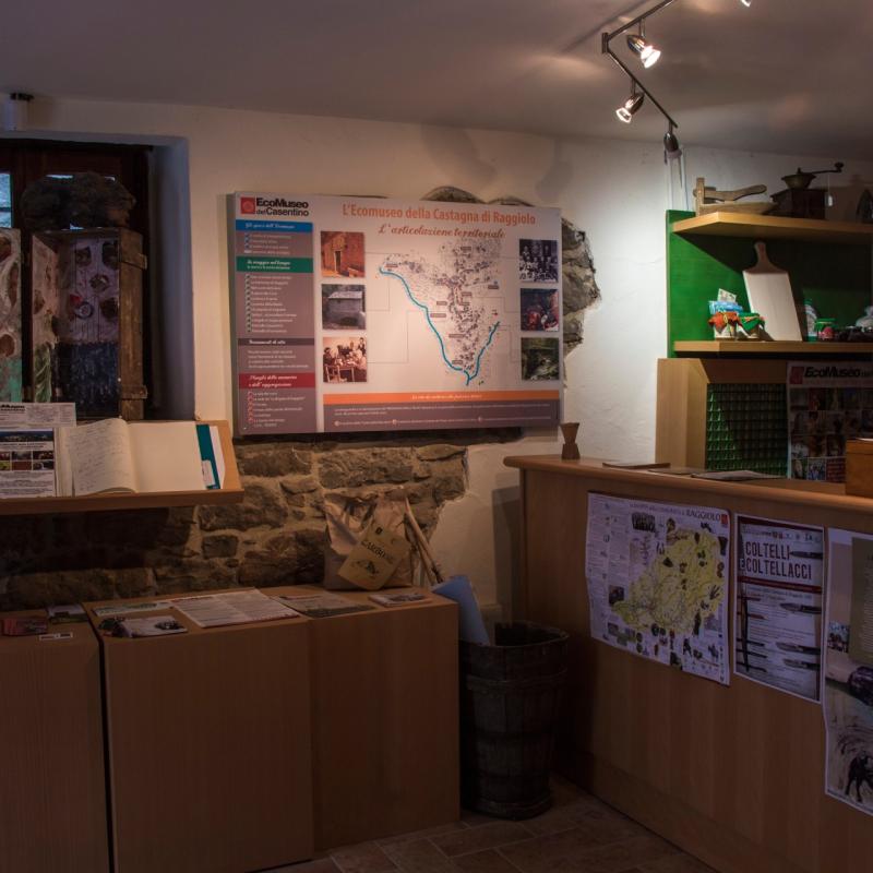 E' il punto di riferimento dell’intero sistema. Attraverso strumenti di lavoro, modellini, pannelli e una sezione multimediale, è possibile ripercorrere un viaggio intorno alla “civiltà del castagno” ed acquisire strumenti ed informazioni per la visita al percorso. Lo spazio ospita un altro frammento prezioso dell’identità del paese: la Mappa della Comunità di Raggiolo realizzata con il contributo diretto degli abitanti. In anni recenti si è andata ad aggiungere una nuova sezione dedicata alla transumanza, altro tema centrale della storia del paese che rimanda alle soprastanti praterie del Pratomagno dove nel passato pascolavano centinaia di pecore durante la stagione estiva per poi trasferirsi in autunno con un lungo viaggio in Maremma .