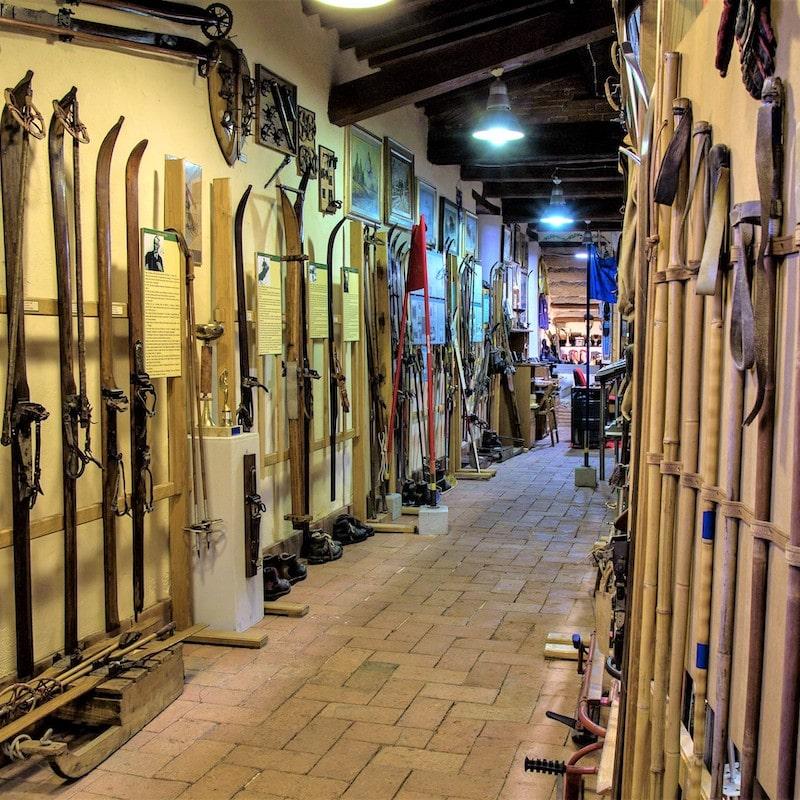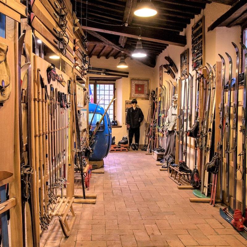 Nel museo dello Sci il visitatore potrà soddisfare la sua curiosità osservando diversi manufatti particolari come ad esempio un paio di sci ripiegabili, in uso ai militari paracadutisti del reggimento operativo Col Moschin di Livorno.